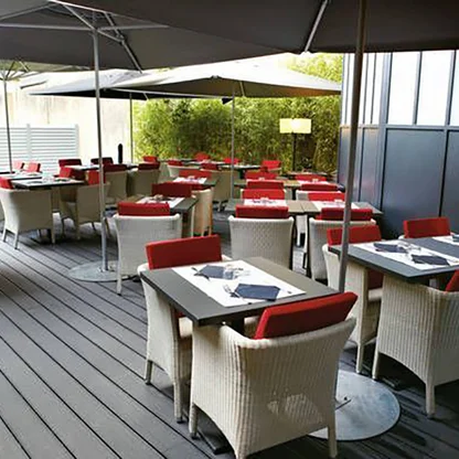 Als Alternative zu den reinen Holz-Terrassendielen bieten unsere WPC-Produkte alle Vorteile des robusten Kunststoffs. Ihre Widerstandskraft gegen Witterungseinflüsse und den Befall durch Pilze oder Insekten machen dieses Produkt zu einem äußerst attraktiven Bodenbelag im Außenbereich - vor allem für gewerbliche Flächen. Durch den flexiblen Einsatz von Formen und Farben haben Sie die Möglichkeit, Ihrem Terrassendesign einen starken individuellen Charakter zu verleihen.