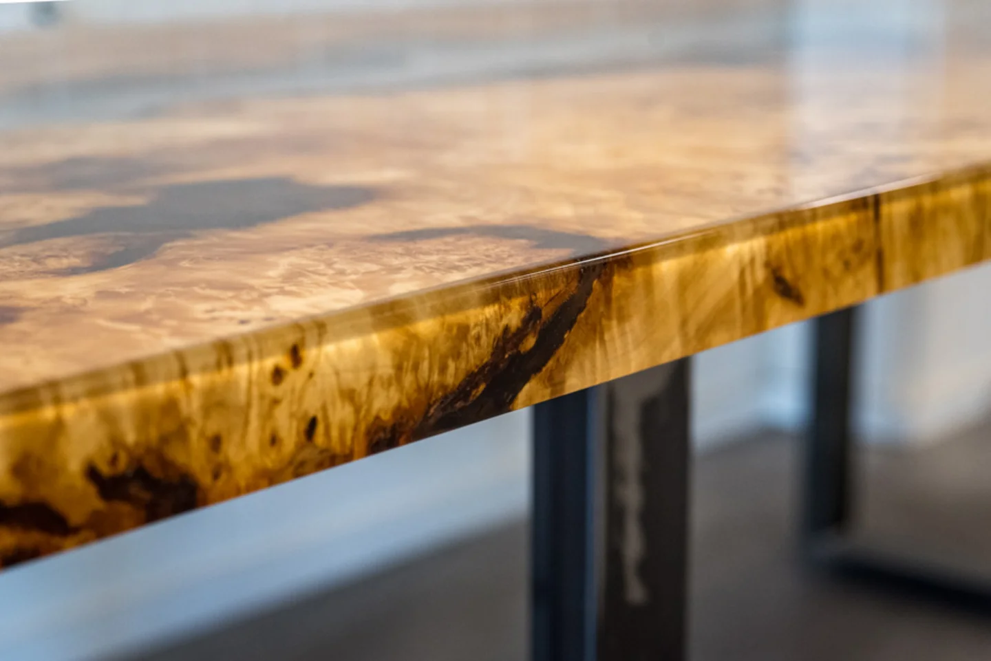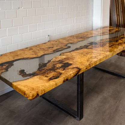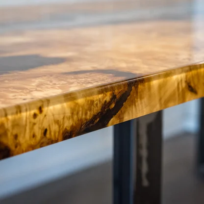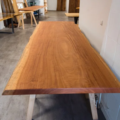 Besondere Möbelstücke sorgen für ein außergewöhnliches Ambiente in den eigenen vier Wänden. In unserer Galerie können Sie maßgefertigte Echtholztische bzw. Tischplatten entdecken, die durch ihre natürliche Optik, eine aufwändige Verarbeitung mit Füllmaterialien, wie Harz, und extravaganten Baumkanten beeindrucken.